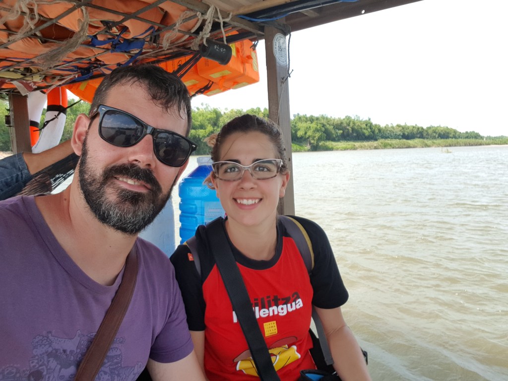 L’experiència va ser una passada; ens vam sentir veritables aventurers creuant selves, ponts de taulons trencats que ens recordaven les pelis de l’Indiana Jones i rius enormes on ens hauríem llençat encantadíssims. I no ens vam banyar al riu però si que vam fer una cosa ben original: en vam creuar un en barqueta amb les motos i tot. Tornant cap a la costa vam trobar una zona del riu massa ampla perquè hi hagúes un pont així que vam creuar-lo amb una barca, descansant una mica de la moto. Va ser molt curiós.