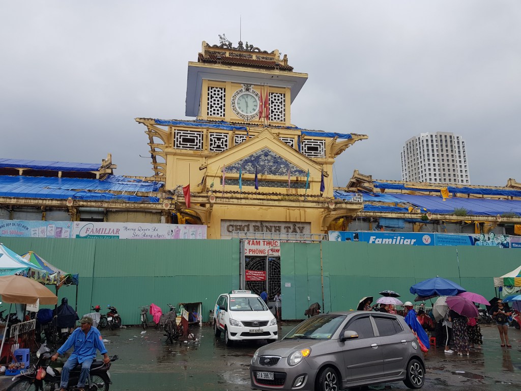 Tot i que plovia una mica la visita al mercat va ser tot allò que esperavem d’un mercat al barri xinès d’una ciutat de Vietnam. Olors, colors, textures i, sobretot, un munt de piles de coses que ni ens imaginem què devíen ser. El mercat estava parcialment en obres però l’interior es podia visitar perfectament, resseguint el laberint de paradetes de menjar. Com ens agraden els mercats..