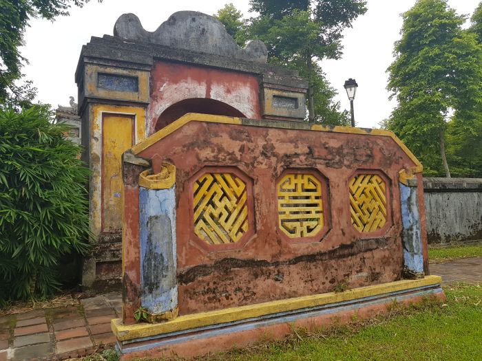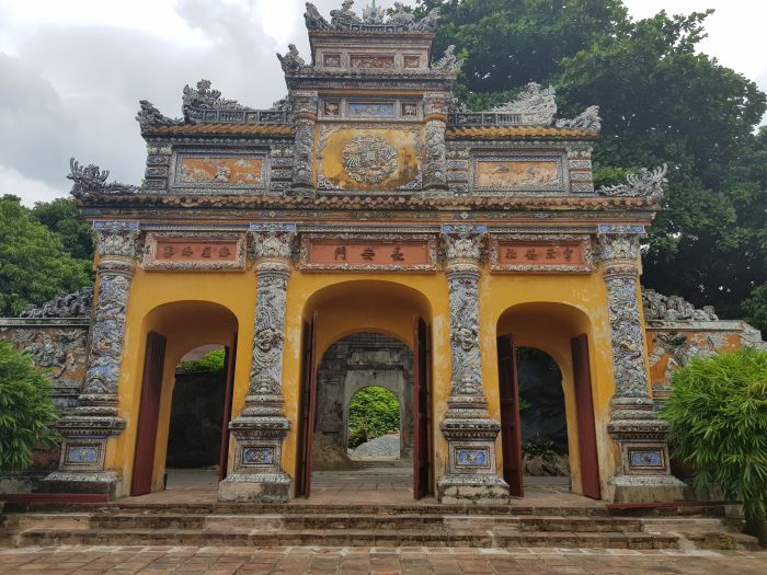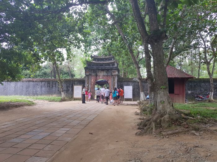 Tornant a les tombes, ocupen un entorn espectacular a l’oest del Riu del Perfum i en formen part fins a 40 edificis, alguns dels quals van quedar molt malmesos durant les guerres posteriors que va patir el país. I és que es tracta de la tomba del segon emperador, aíxí que la seva construcció es remonta a 1843 i va ser duta a terme pel mateix Minh Mang i, després de la seva mort, pel seu fill.