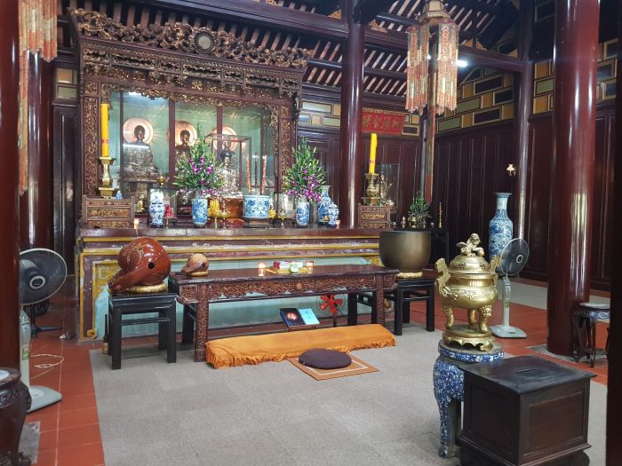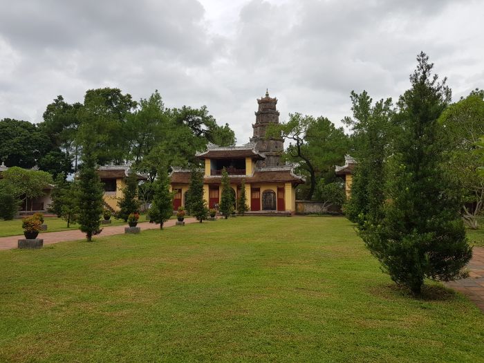 Només arribar trobem la Torre Phuoc Duyan i els jardins, però mica en mica descobrirem patis, una campana de bronze de 2 tones (diuen que es pot sentir a 10 quilòmetres de distància), una estela on s’explica la història del budisme a Vietnam i, flipeu, un cotxe! I no és un cotxe qualsevol, és el del monjo Thich Quang Duc que el 1963 es va cremar viu (i de fet la fotografia que ho immortalitza va ser premiada amb el Pulitzer aquell mateix any). Vaja, que hi heu d’anar ja que és un lloc preciós per on passejar a la voreta del Riu del Perfum i hi ha parts importants de la història del país.