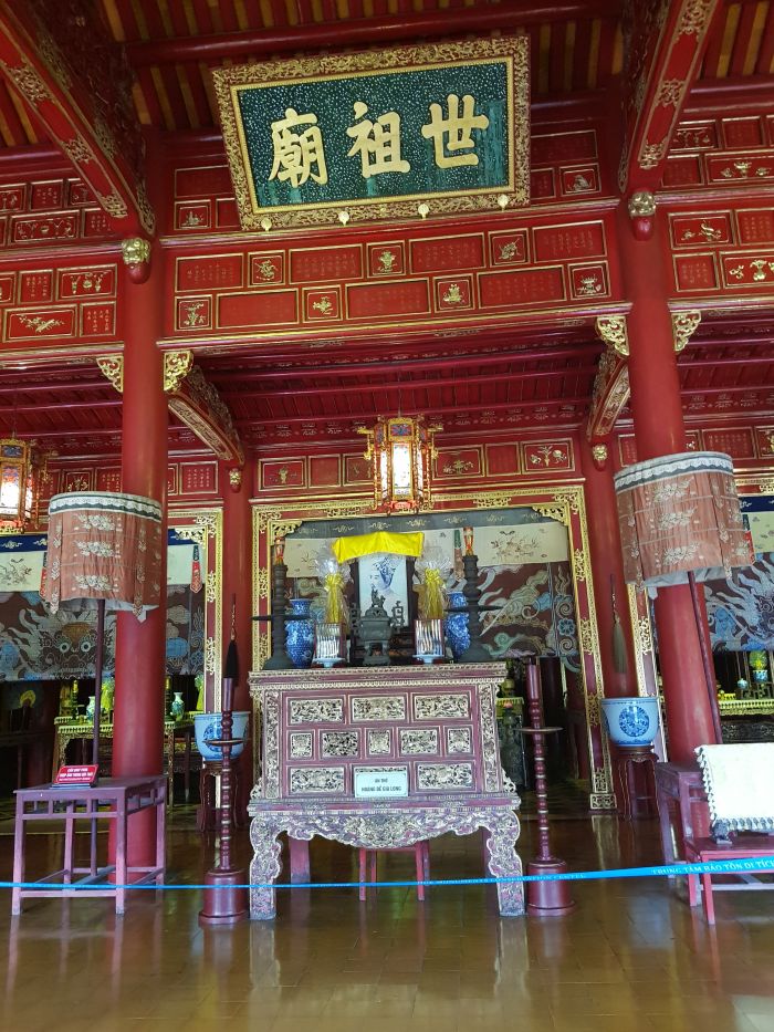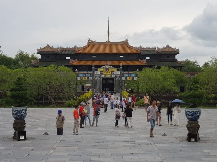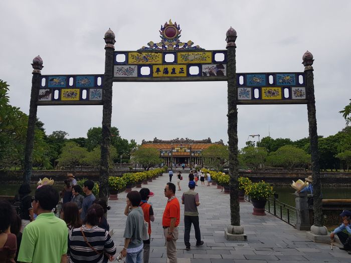 Ara si, entravem a l’edifici més important del centre del país, Patrimoni de la Humanitat des de 1993 i que vindria a ser l’equivalent vietnamita de la Ciutat Prohibida de Beijing (de fet la Ciutat Porpra, on només podía accedir l’emperador, la seva esposa i les concubines, està construïda basant-se en ella).