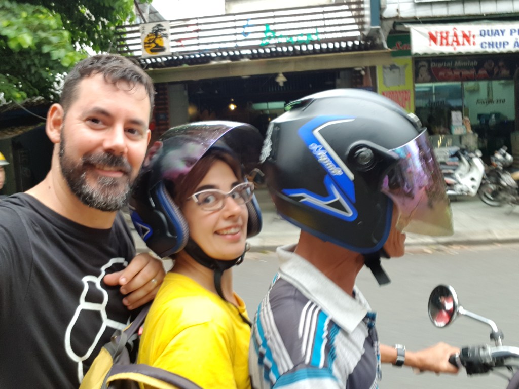 Per tancar el tracte ens va acompanyar a l’hotel en moto (si, tots 3 en una moto, benvinguts a Vietnam) i vam quedar el dia següent a la porta per començar la nostra aventura.