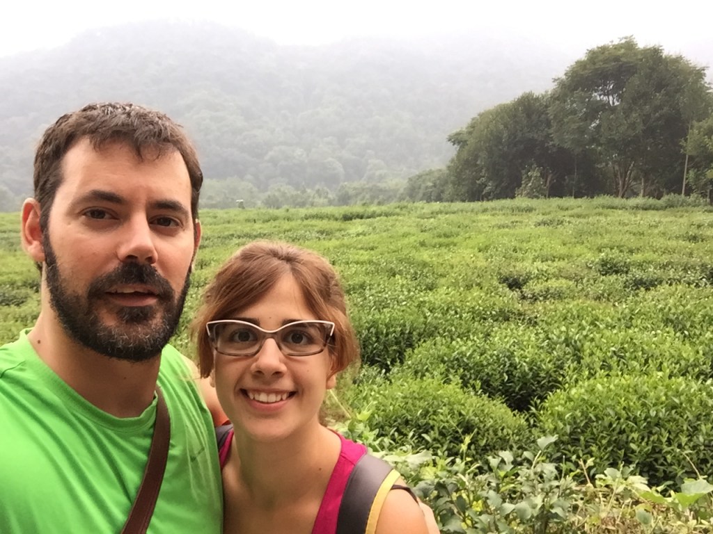 Hangzhou ens esperava! Altra vegada cap a una estació de tren que podria ser com quatre aeroports nostres, controls d’equipatge, buscar la porta… El trajecte en tren es va fer curt, però a l’arribar vam tenir aventura amb el taxi. Duiem l’adreça escrita en xinès, però el taxista mirava l’adreça, ens mirava a nosaltres, mirava l’adreça, ens mirava a nosaltres… va començar a conduir i semblava que s’aclaria, però va durar poc! Llavors va començar a trucar gent… no sabem si per preguntar alguna cosa del recorregut o per xerrar amb algú mentre anava conduint. Al cap de 45 minuts ens va deixar a un lloc al mig de la muntanya i no teníem massa clar si baixar o què. De sobte va aparèixer un noi jove molt simpàtic que ens va indicar que havíem arribat! S’ha de reconèixer que tot i estar on Confuci va perdre la sabatilla esquerra, és un lloc maquíssim!! Un cop deixats els trastos, vam baixar a preguntar al noi com podíem arribar a la ciutat, ja que estàvem al mig de les muntanyes, entre plantacions de te. El noi no parlava gens d’anglès, així que tota la conversa va ser amb un traductor del mòbil. Ens va dibuixar dues línies perpendiculars en un post it (que encara guardem) i ens va indicar que a una punta hi havia el Museu del Te i a l’altra el Temple de Lingyin.
