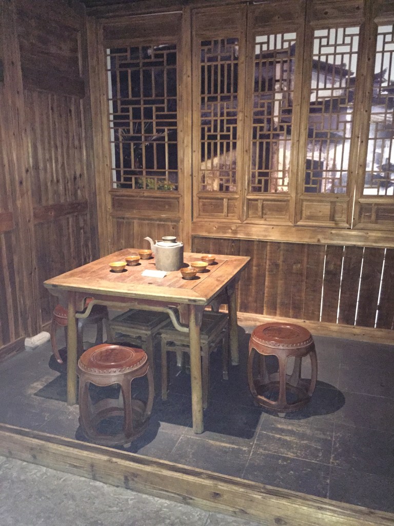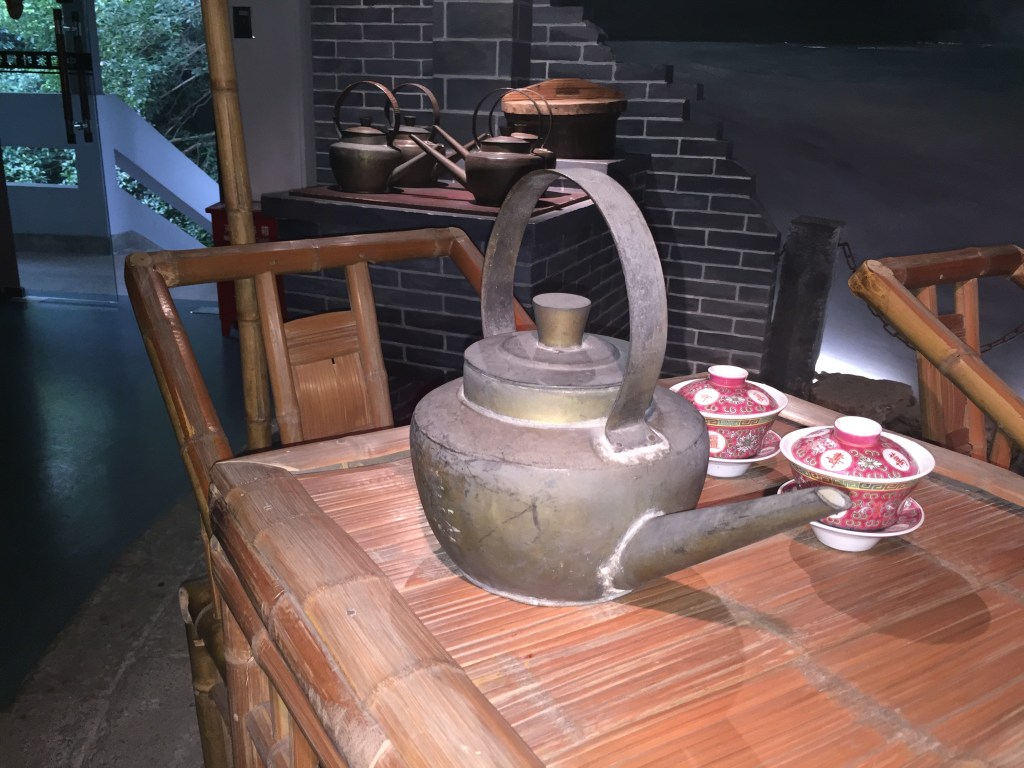 Després de caminar i caminar per camps del que es considera el millor te del món (Te de Longjing o Del Pou del Drac. És el te verd més famós de Xina i només es cultiva en aquesta zona. Les fulles, en comptes de ser fumades com es fa en d’altres infusions, són assecades en unes cassoles), sorprenentment vam arribar al Museu del Te. Al museu hi explicava el desenvolupament del cultiu de te a Xina, l’evolució de la Cerimònia del te durant totes les èpoques i hi ha una exposició de moltes i moltes sales de tasses, teteres i similar.