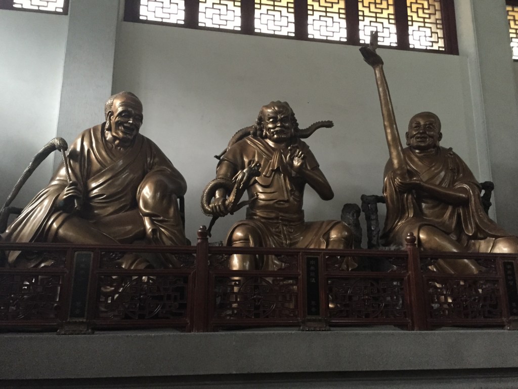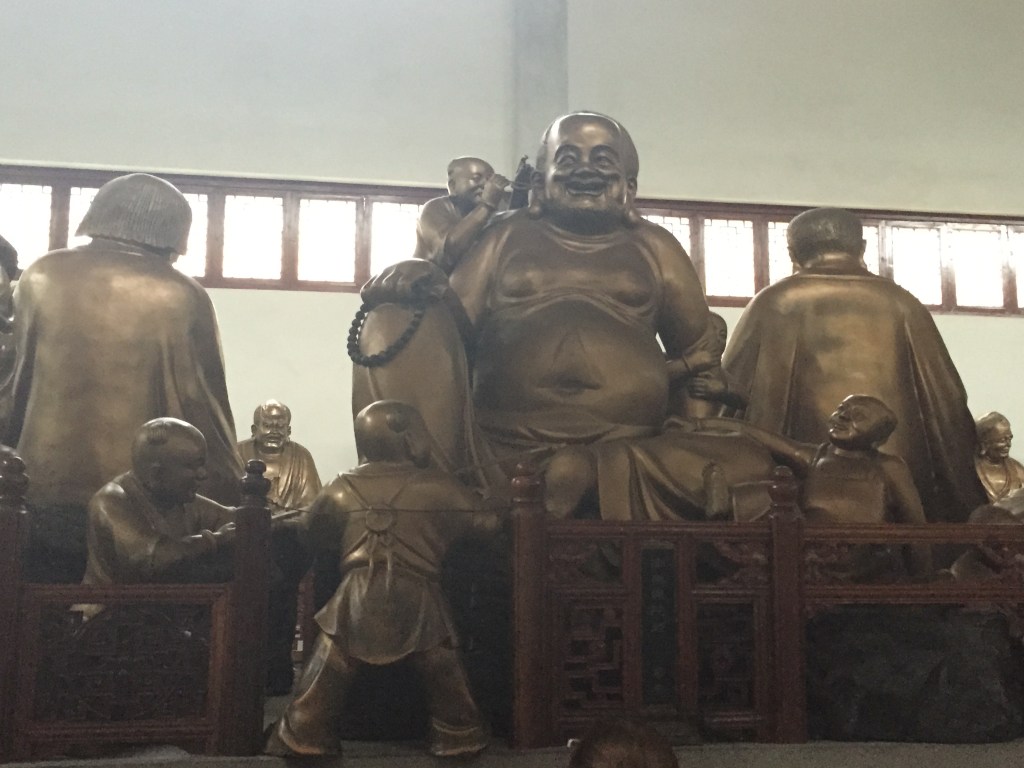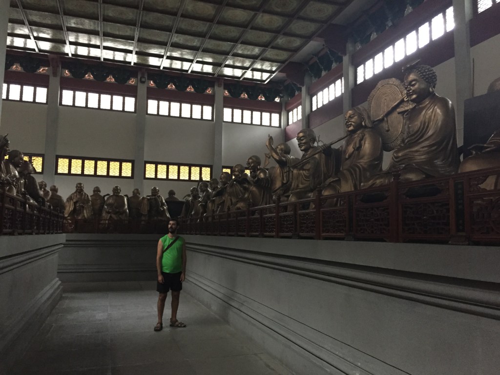 Després vam baixar a veure el Buda Maitreya de 20 metres, en teníem moltíssimes ganes i a l’arribar… estava tancat per obres! Ens va saber molt i molt greu, ja que només vam poder veure un pit del Buda a través d’un forat que hi havia entre les bastides…. però tot i això, ens va encantar trobar una sala no amb un, sinó amb 500 budes tots diferents! És la Sala dels 500 Arhats. En una sala de més de 3116 metres quadrats, s’hi troben més de 500 budes de 1,7 metres cadascun, fets de bronze que pesen una tonelada cadascun, aproximadament. Vam estar mirant-los bé un per un, perquè no és que tinguessin una cara lleugerament diferent, és que eren totalment diferents!