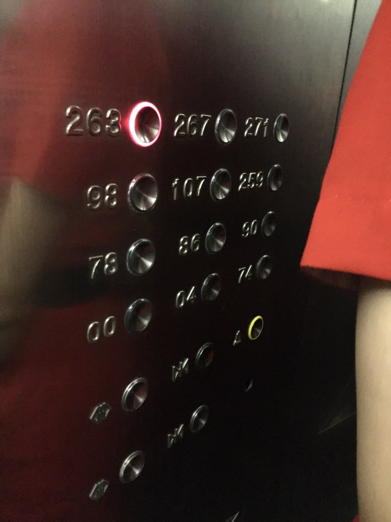 Quan havíem estat una estona en aquell nivell mirant les vistes, fent-nos alguna foto i així i volíem canviar de lloc no podíem entrar dins perquè hi havia un excés de gent i no es podia tornar a entrar… vam haver d’estar fent una altra cua. Cal dir que aquí la cua va ser més agobiant perquè et veies allà damunt d’un vidre amb un excés d’humans i la impressió angoixava una mica (és totalment subjectiu i psicològic, perquè segur que aquell terra aguanta el mateix que un de negre, eh! però quina impressió feia!)