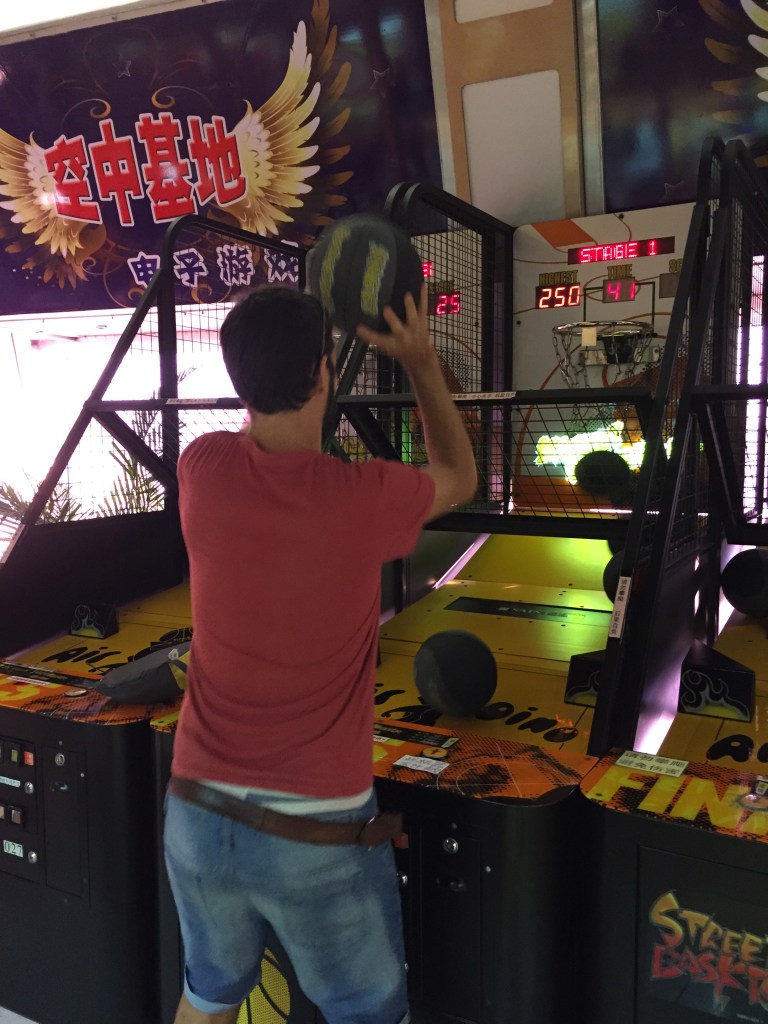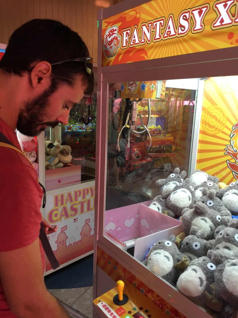 Finalment vam poder baixar un nivell i vam trobar-nos els recreatius on el Jaume va jugar a maquinotes de bàsquet i va intentar pescar un Totoro sense massa èxit.