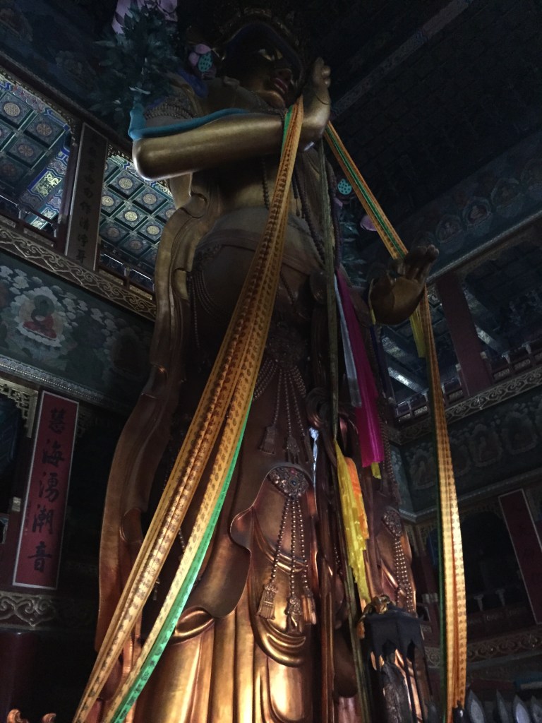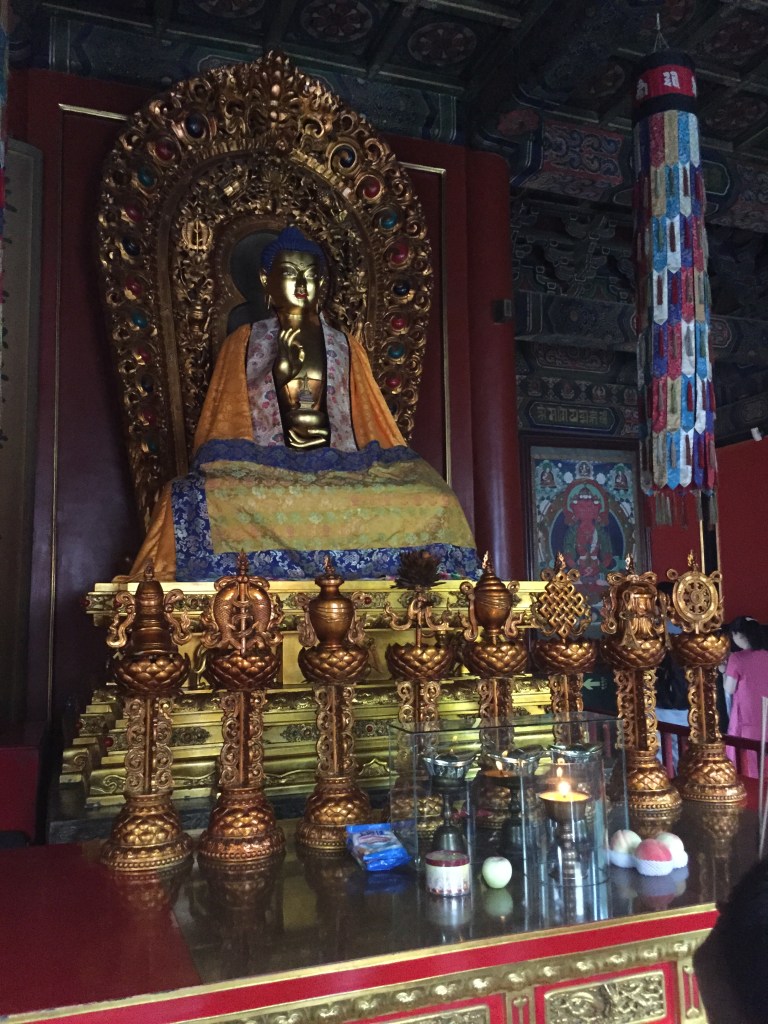 Vam sorprendre’ns amb la figura de 6 metres de bronze de Tsongkapa però quan arribes a la sala on hi tens el que ells anomenen “el buda futur” de 18 metres, et cauen els pantalons. Ens van comentar que quan van construir l’edifici on ficar-lo van patir perquè els costava molt amb el Buda dins i de fet es veu força justet, pobre.