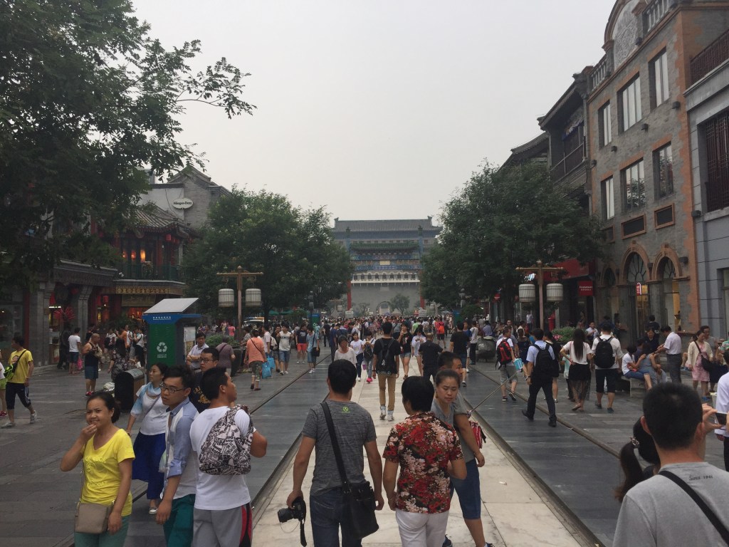 Vam baixar del tren a Dongzhimen com ens havíen recomanat i vam fer canvi a la línia 2 que ens va deixar a Golou Diaje. Per fi estavem caminant per Beijing! Vam deixar enrere la Torre del Tambor i la Torre de la Campana que visitaríem més tard i només passejant pel carrer ens vam adonar de com de diferent era allò a casa nostra.